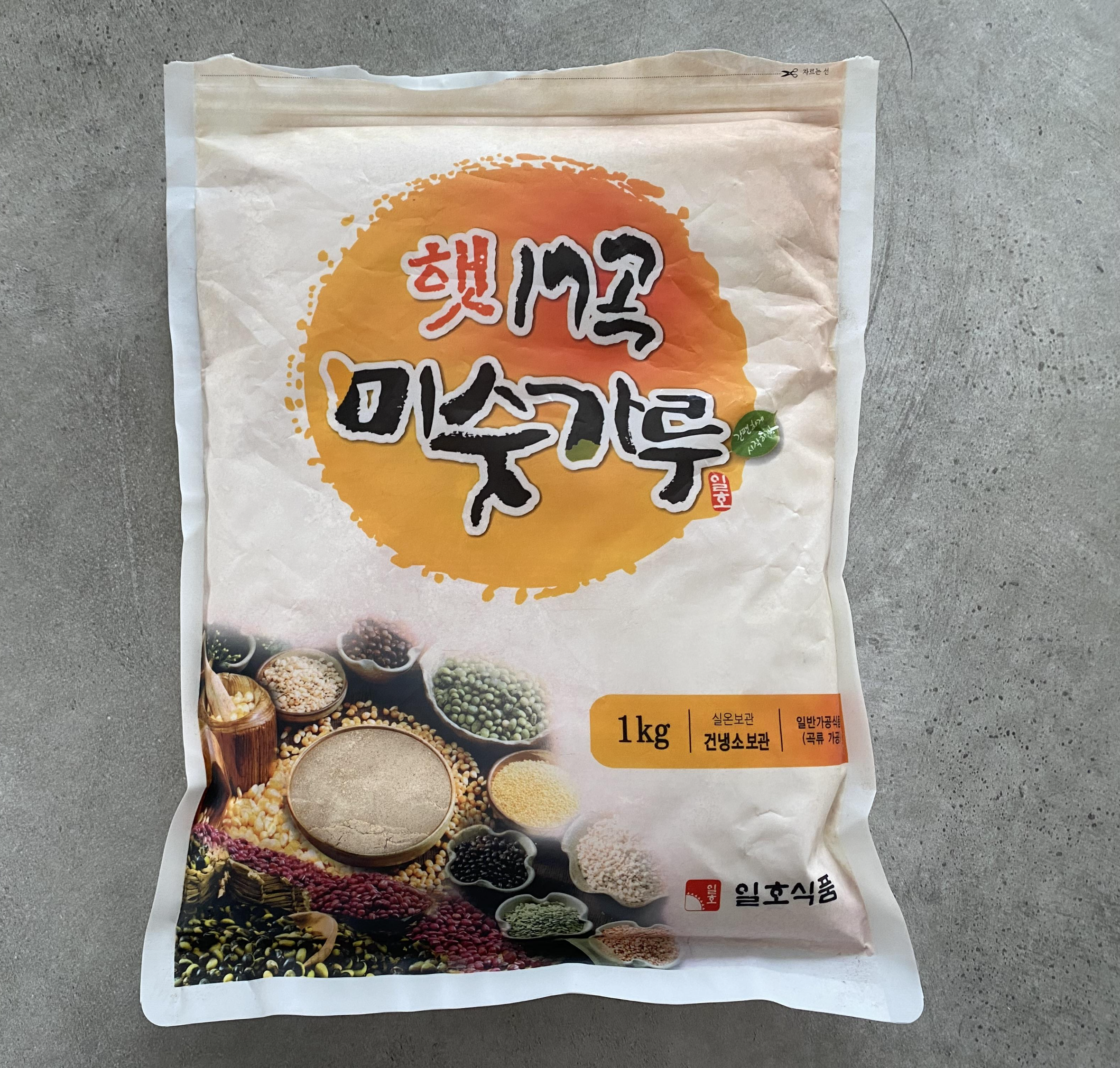 미숫가루는 율무차 대신에 사 왔어요. 작년에 사 온 허니곡물라테를 아끼고 아껴마셨는데, 임신하면서 안 마셨거든요. 율무가 임산부한테 안 좋대요. 한국에서도 독일에서도 피해야 되는 식품 리스트에 있어요. 그래서 찾아보니 미숫가루는 오히려 좋다고 하네요. 그래서 순수 미숫가루를 찾아다녔지만 안타깝게도 17곡 미숫가루를 찾았답니다. 뭐가 들었는지 보니 17가지나 되는 많은 곡물 중에 다행히 율무가 없어 이걸 골라왔어요. 아주 맛있게 마시고 있어요. 행복하답니다.